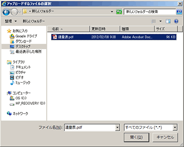 「アップロード」をクリックします。 複数のファイルを一度にアップロードする場合は、ZIP・LZH・Stuffitなどに圧縮してください。 ※ファイル名はできるだけ短くし、記号は使用しないで下さい。